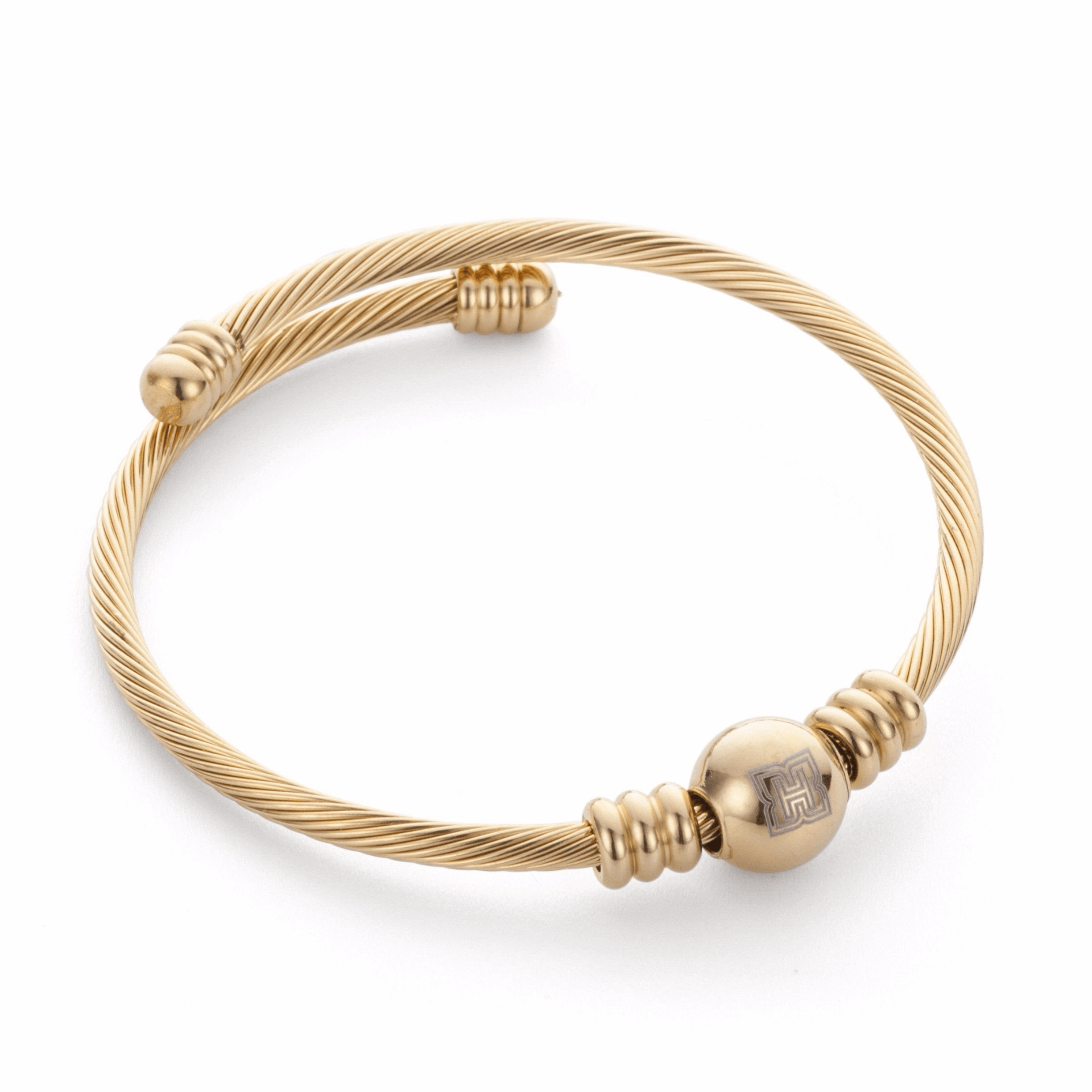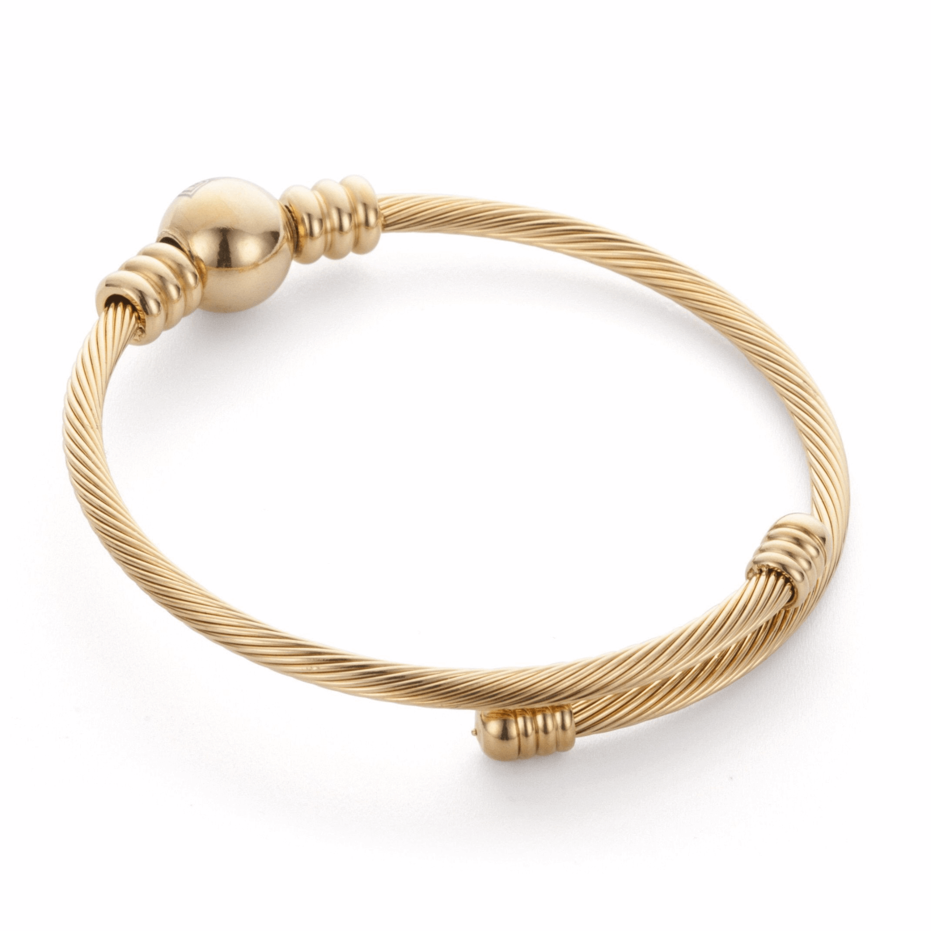 • Gold plated cuff bracelet, with golden orb in the center.