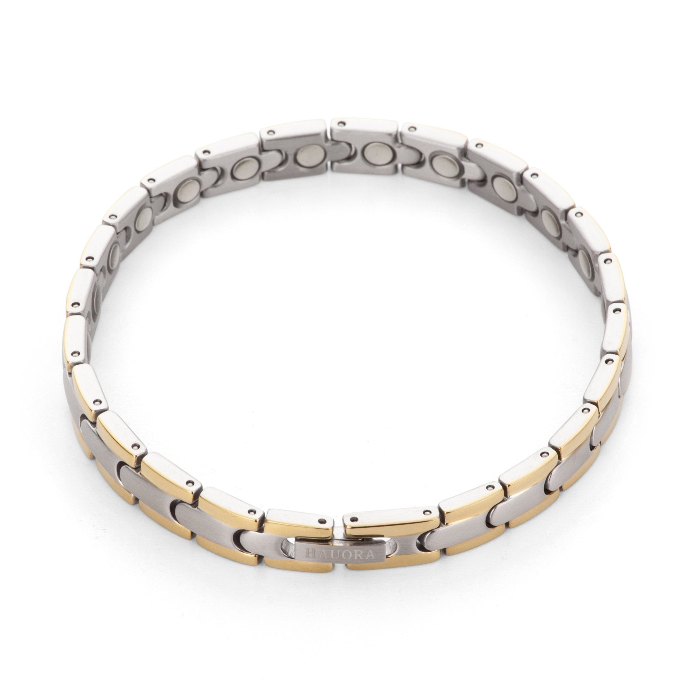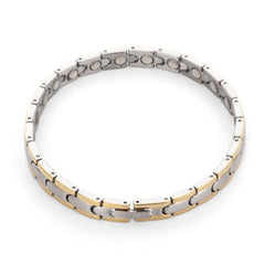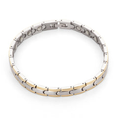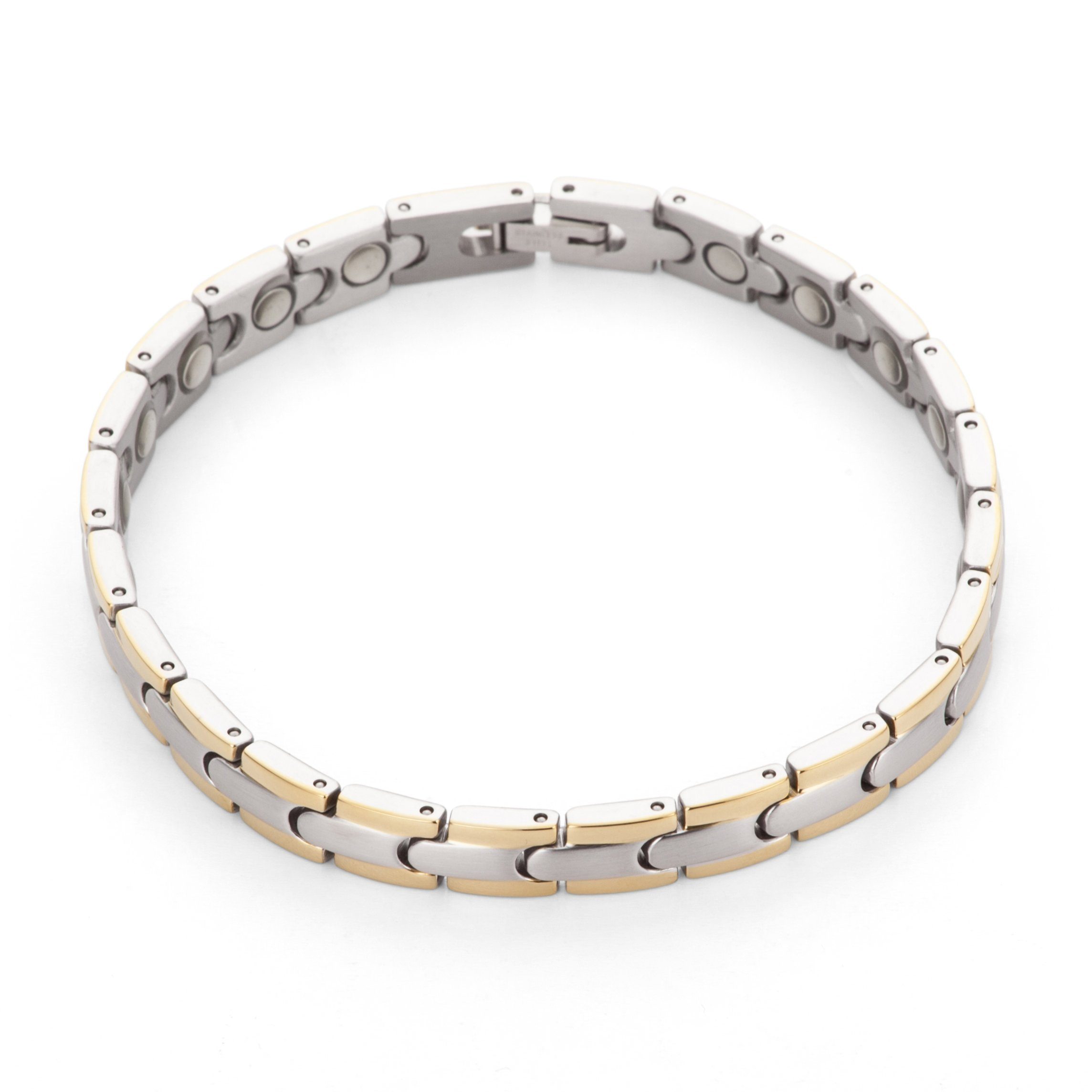 - Gold plated and stainless steel (Health) bracelet, embedded with magnets, negative ions, germanium and far infrared red stones to boost your health.