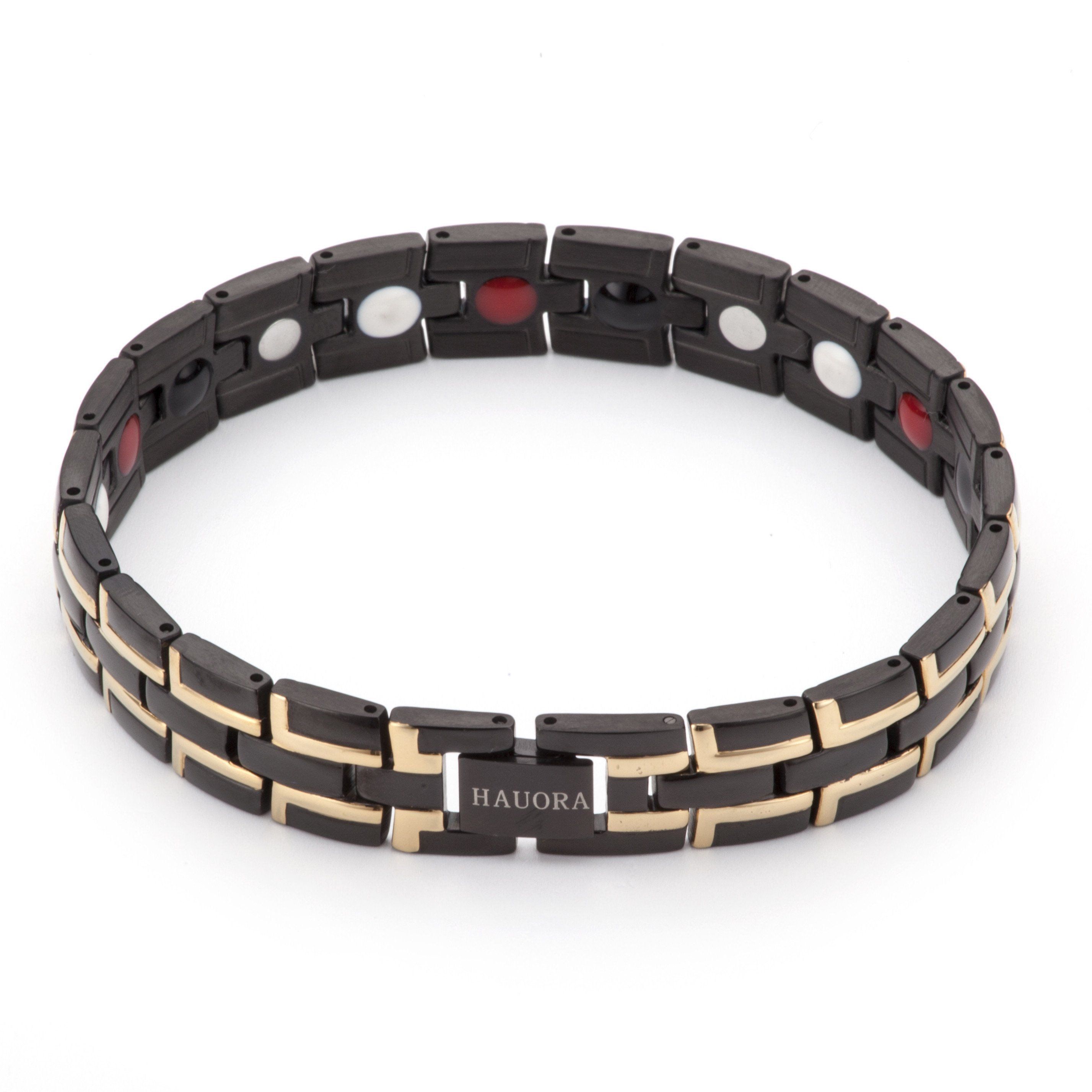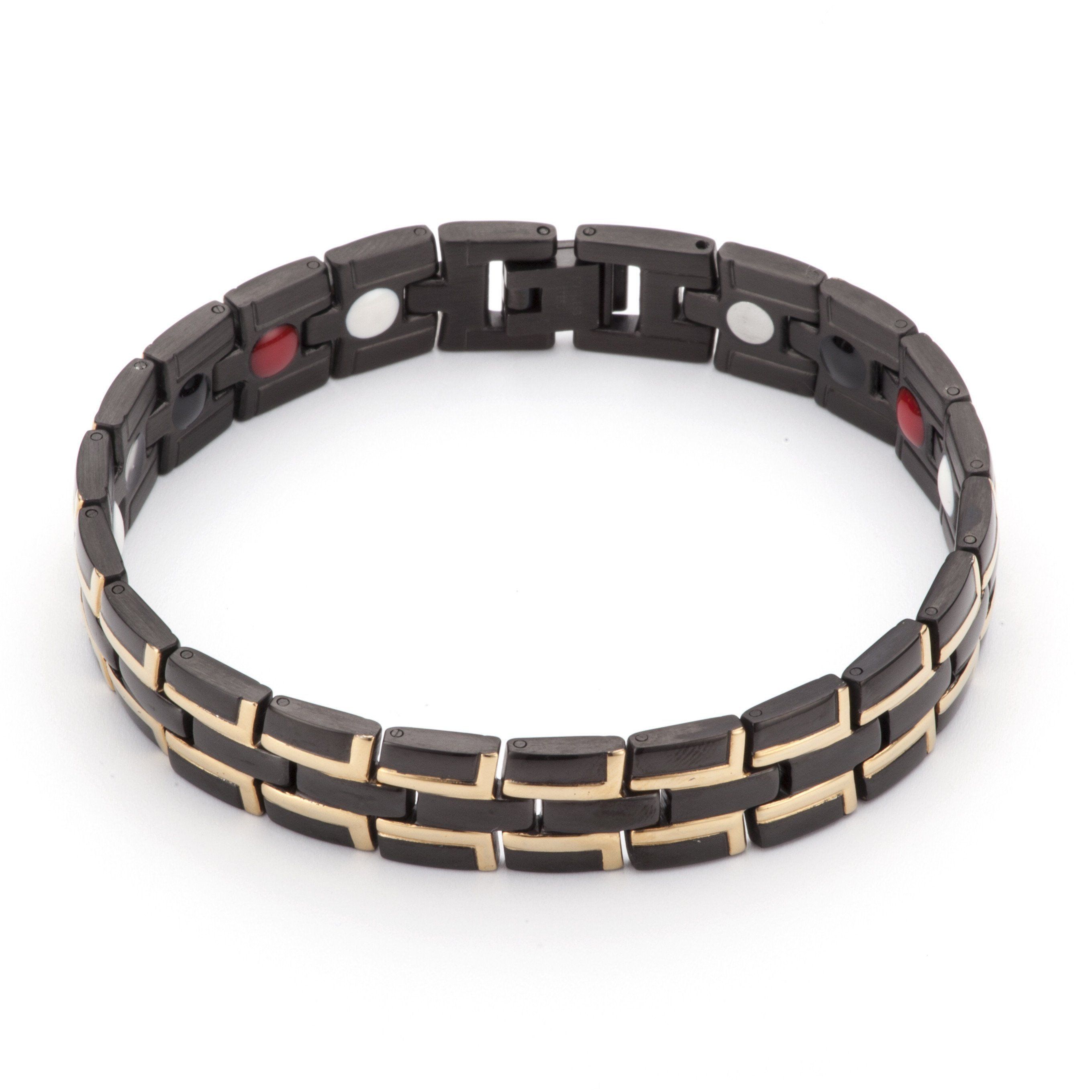 - Black gloss and gold (Health) bracelet, with an ancient Roman style finish and embedded with magnets, negative ions, germanium and far infrared red stones to boost your health.